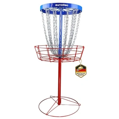 Professional basket for disco, optimal simulation of putten outside the discgolf park Weight: 14.3 kg, number of chains, 24, height: 133 cm, basket height: 16 cm, basket diameter: 64 cm, chain diameter: 54 cm, chain height: 46 cm 24 high quality metal chains, heavy, galvanized and clearly visible.