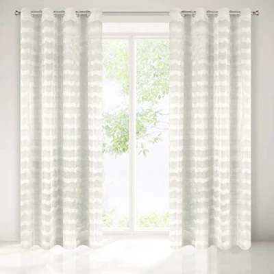 EuroF Irany Curtain with Eyelets 140 X 250 cm Polyester Plain, Cream 1
