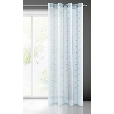 Eurofirany Benay Curtain Smooth Transparent Eyelets 140 x 250 cm Hearts Bedroom Living Room 100% Polyester Blue + Silver