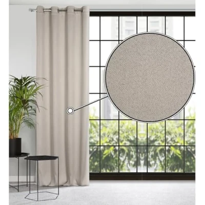 Eurofirany CARLO Extra Long Blackout Curtain with Eyelets 1 Unit, Heavy 340g/m², Thermal Insulating Curtain, Opaque, Room Darkening, Bedroom, Living Room, W53'' x L98'', Beige