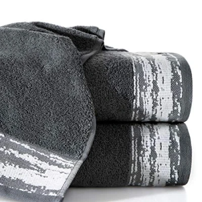 Eurofirany Cotton Bathroom Towel Steel Grey Colour Pattern Border Set of 6 Oeko Tex 50 x 90 cm
