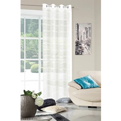 Contemporary with a light curtain a striped design Perfect as a window decoration in any room Material: 100% Polyester, Size: 140 x 250 cm; colour: white Easy mounting with eyelets Transparent and easy to care for