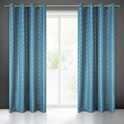 EXCLUSIVE DESIGN The exclusive curtain is made of a beautiful material with geometric print. Thanks to the great fabric, this fabulous Unique quality: our top quality makes the curtains unique and extraordinary. The fabric is flowing and beautiful Easy to install: the incorporated 8 metal eyelets make attaching the curtains super easy and quick Features: size: width: 140 cm, height: 250 cm (+/- 3 cm). Composition: 100% polyester. Blackout level: medium. Quantity: 1 piece. per pack GREAT COMBINATION OPTIONS: The curtain fits into a home in modern or Scandinavian style