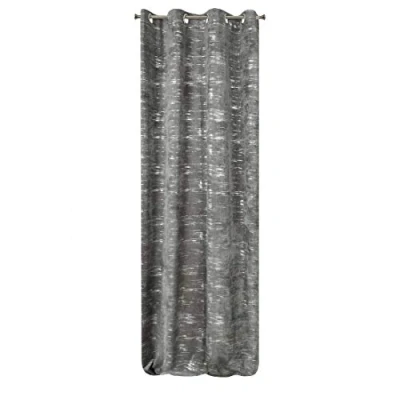 Eurofirany curtain, smooth, velvet look, corduroy leaf, print, pattern, eyelets, elegant, glamour bedroom, living room, steel grey, 140 x 250 cm