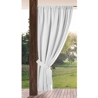 BASIC INFO: Quantity: 1 piece per package. In order to get a set, please order 2 pieces, pictures are for illustrate only. Outdoor curtain measures 61 inch width x 79 inch length. For proper fullness, panels should measure 2-3 times the width of your rod. Density: 180 g/m² Composition: 100% Polyester. Included accessories: Binding sash. EASY TO INSTALL: Rod pocket allows for quick mounting. The curtain can be hanged simply by driving the rod through the tunnel. The curtain will fit rods up to 4cm in diameter. FEATURES: Besides nice appearance, our product offers numerous of practical applications. Waterproof fabric protects against rain, wind, sunlight, dust and humidity. It can also be used as a privacy screen from the unwanted looks. No metal parts mean no rust. VERSATILITY and DURABILITY: The light fabric is resistant to bad weather conditions. It dries quickly and remain in its original shape. This makes it an ideal choice for the garden, balcony, courtyard, beach, terrace, patio, pavilion, veranda etc. MAINTENANCE: Wash at 30°C, gently program. Iron at temperature 110°C. 30-day money-back guarantee - the goods don't quite fit into your home? No problem! You have 30 days to make a return.
