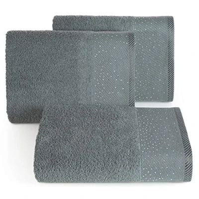 Eurofirany Hand Towel Cotton Graphite Soft Glitter Stones Border Set of 6 Oeko Tex 50 x 90 cm
