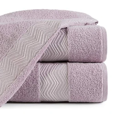 Eurofirany Hand Towel Cotton Pink Zigzag Pattern Metal Stitching Border Set of 3 Oeko Tex, 70 x 140 cm,