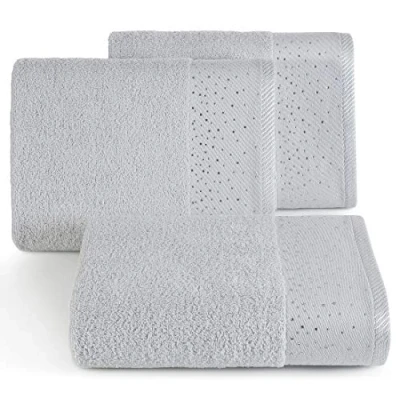 Eurofirany Hand Towel Cotton Silver Soft Glitter Stones Border Set of 6 Oeko Tex 50 x 90 cm