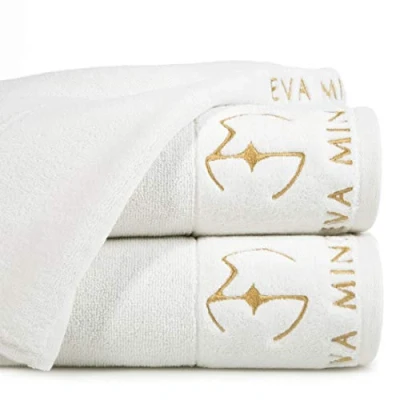 Eurofirany Hand Towel Cotton Soft 70 x 140 cm Simple Logo Set of 3 Oeko Tex, Cream, cm,