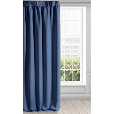 Eurofirany LOGAN Extra Long Blackout Curtain 1 Unit Rod Pocket, Rufflette Tape, Light blocking Room Darkening Bedroom Living Room, W53 x L106, Dark Blue