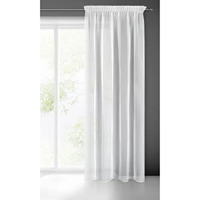 Eurofirany LUCY Voile Curtain, Sheer Curtain with Rufflette Tape 1 Unit, Bedroom, Living Room, Kitchen, White, 140x270 cm