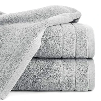 Eurofirany Oeko Tex Cotton Towel with Simple Soft Pattern Thick Set of 3, Steel Grey, 70 x 140 cm