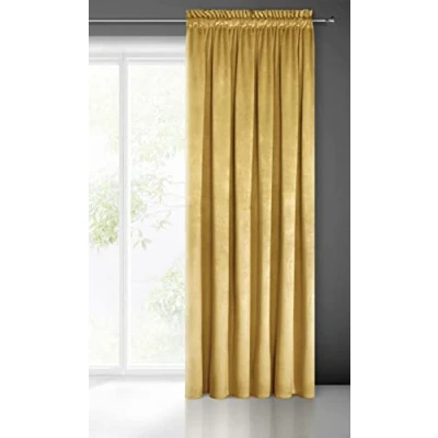 Eurofirany PIERRE Soft Plain Opaque Velvet Curtain with Rufflette Tape For Rail 1 Unit, Fluffy Panel Drape Classic Glamour Elegant Living Room, Bedroom, 215 g/m2, W55 x L118, Mustard Yellow