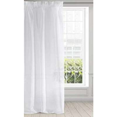 Eurofirany Smooth Etamine Ruffle Tape Curtains Transparent Elegant Glamour Bedroom Living Room Lounge, Fabric, White, W55 x L106