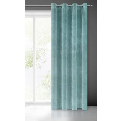 Eurofirany VILLA Soft Plain Opaque Velvet Curtain with Eyelets 1 Unit, Fluffy Panel Drape Classic Glamour Elegant Living Room, Bedroom, 290 g/m2, W55 x L98, Sea Green