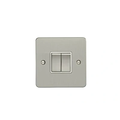 Eurolite 2 Gang 10Amp 2Way Switch Enhance Flat Satin Stainless Steel Plate Matching Rockers White Trim