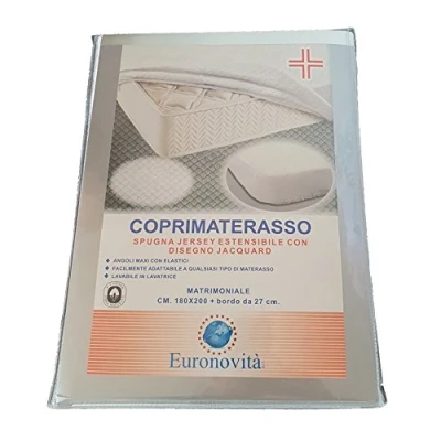 Stretchable soft terry jersey mattress protector; a soft jacquard fabric for your mattress, cool in summer and warm in winter Particularly elastic, adapts to mattresses of different sizes with ease and without creasing. Please note that you receive the euronovità srl branded mattress protector as you can see from the picture; other sellers offer different items; please check that there is our brand Double 180 x 200 cm + 26 cm border Machine washable at 30 degrees