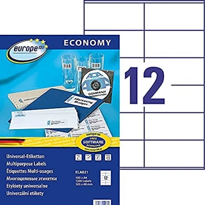 EUROPE 100 1200 Labels, 105x48mm, White, Multi Purpose, Self Adhesive Labels