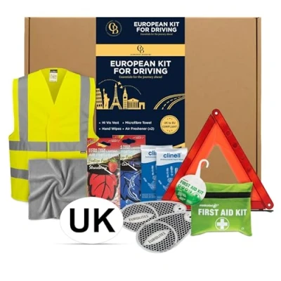 Driving Kit Includes 2026 - A Range of Items Needed for Any European Trip. Such as Microfiber, Beam Deflectors and UK Stickers for car Europe + More. This Kit Includes Everything Needed To Drive In Europe Travel With Ease - Make Travelling Easy With This Kit, Included Are All Necessary Items To Travel Plus Some Key Extras. Allow You To Keep Everything Perfectly Organised And Neatly Stored. Headlamp Beam Deflectors For Europe - Its A Necessary When Driving In Europe To Convert Your Headlamps And These Beam Convertors Are Perfect For The Job. Can Be Easily Removed Once Your Driving Back In The Uk UK Car Stickers for Europe and Safety Vest - UK car stickers for Europe And Safety Vest Are Necessary This Kit Has You Covered. Easy To Install Magnetic Sticker And Easy To Store Safety Vest Keep Your Car Fresh - Included Are 2 Air Fresheners And Hand Wipes To Keep Your Car Fresh While On A Long Road Trip, Perfect Road Trip Essentials and eu driving kit 2026