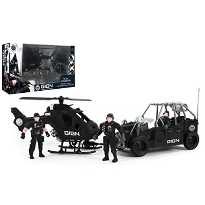 EUROPEAN FORCE 093550 Helicopter and wheel Vehicle GIGN 3 Figures Accessories 30 cm Plastic for Age Years Above, Black