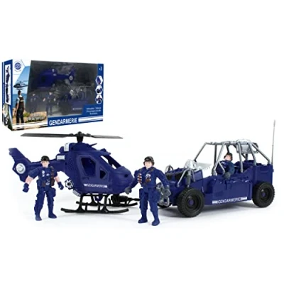 YOUR NEW TOY: This gendarmerie intervention set for children is a great way to promote imagination while having fun. With this toy, they can relive the battles of their favorite heroes alone or with friends CONTENT: This game contains 1 set with 1 helicopter, 1 freewheeling vehicle and 3 articulated characters. This product is made of plastic to provide all the necessary strength to last a maximum over time. Official Gendarmerie License LIVE THE COSTUMES: When children play, they often have dreams of becoming fearless heroes. With this gendarmerie intervention set, you can help your child live these dreams and feel like a real soldier! TIMELESS TOYS: Timeless and essential, miniatures are at the heart of fun, they will allow your children to have fun even in your absence TO YOUR WEAPONS, READY? LEAVE! : MGM Group's European Force brand offers a range of military-inspired toys to allow children to have fun creating mission and rescue scenarios. Play like big ones!, Manufacturer: MGM