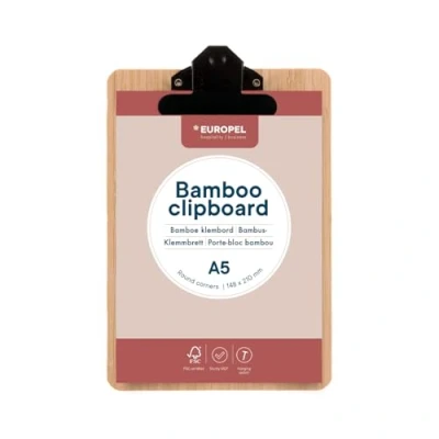 EUROPEL Bamboo Clipboard Durable Wood Hardboard with Black Metal Clip & Concealed Hanging Hole A5 Landscape for School Classroom, Office, Business, Restaurant, Warehouse, 197011