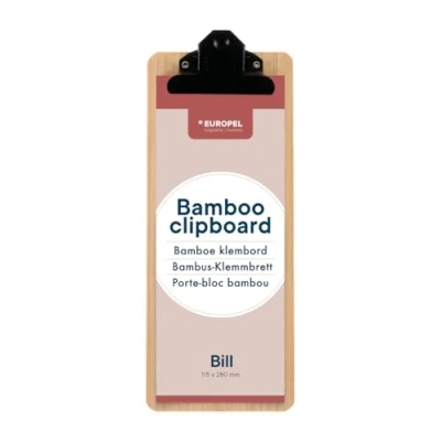 EUROPEL Bamboo Clipboard Durable Wood Hardboard with Black Metal Clip & Concealed Hanging Hole Mini/Bill Paper Board for School Classroom, Office, Business, Restaurant, Warehouse