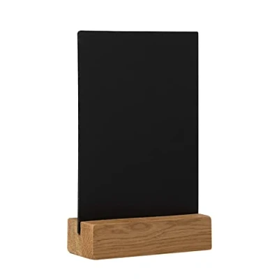EUROPEL Chalkboard desktop size A6 with stable foot made of sturdy and durable FSC certified oakwood. Chalkboard is made of high-quality black polystyrene. Easy to clean with a damp cloth. Double-sided presentation. Suitable for water-based chalk markers (Not for blackboard chalk).