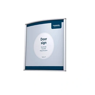 EUROPEL Door Sign holder, Wall Mounted, Simple and elegant, Slightly curved, 15X15cm, Vertical or Horizontal Display, PVC non glare cover, Silver, Screwing adhesive fixing, Incl. mounting material.