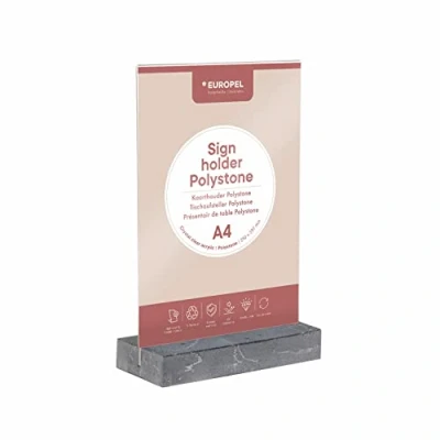 EUROPEL Sign Holder Anthracite Polystone Base Crystal Clear Acrylic A4 T Stand Two Sided Presentation Poster Menu Brochure Restaurant Hotel Conference
