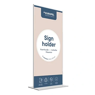 EUROPEL Sign Holder (T Standard, 105x210mm Size, Portrait) Clear Acrylic Construction Double Sided Poster, Menu & Leaflet Display with Base Free Standing Design