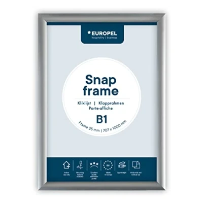EUROPEL Snap Frame B1, 25 mm Aluminium Anodised Construction & Anti Glare Cover Clip Poster Holders for Retail Advertising Displays Notice Sign Board Walls