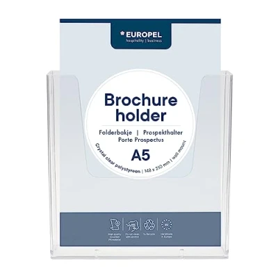 Europel Wall Mounted Brochure Holder for A5 Size Crystal Clear Acrylic Literature Stand & Dispenser Booklet, Flyer Menu Display Office, Restaurants Reception Portrait