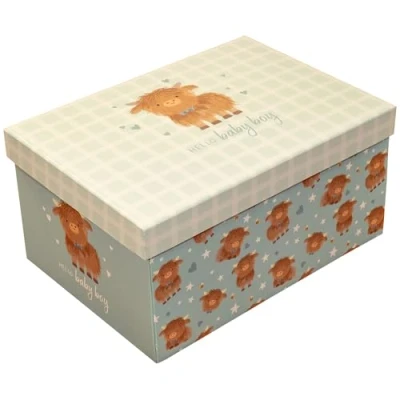 Eurowrap Blue Baby Boy Girl Flat Pack Gift Box with Lid Perfect for Shower, Keepsake, New Born Present
