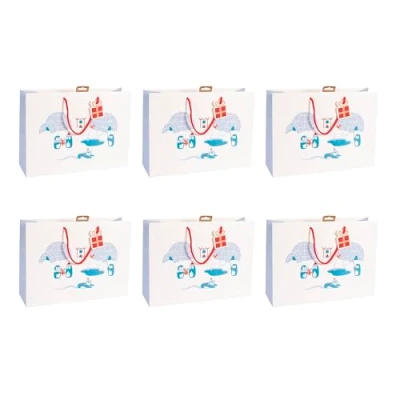 Eurowrap X 30912 6Cpack Un Lot de 6 Sacs Cadeaux Excellia Format Shopping 37,3x11,8x27,5 cm 210g Motif : La Vie des Pingouins, Noël Enfant Idéal Pour Jeux Société, Puzzles