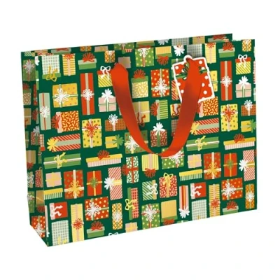 Eurowrap X 34644 6C Un lot De 6 Sacs cadeaux Excellia Format Shopping 37,3x11,8x27,5 cm 210g Motif : Sweet Christmas, Multicolors Fond vert Idéal Pour Jeux Société, Puzzles