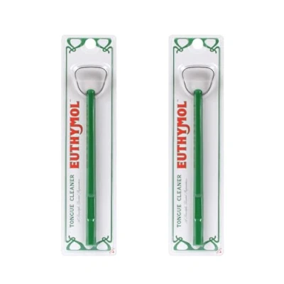 Euthymol Tongue Cleaner Stainless Steel, 14 Neck Angle for Enhanced Cleaning, Minimizes Gag Reflex, Helps Reduce Bad Breath, 12 Hour Fresh Easy to Use 2 Pack