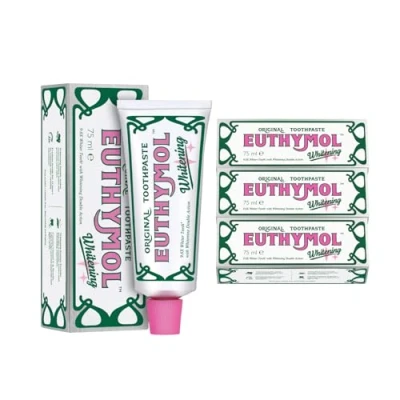 Euthymol Whitening Toothpaste Bundle 3 X75ml Fluoride Toothpaste, Non GMO Gluten Free, Plaque Removal Cavity Protection Antibacterial, White Clean Teeth, Freshens Breath Refreshing Dental Care
