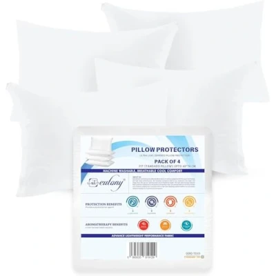 Eutony Pillow Protectors 4 Pack 100% Cotton Zipped Ultra Luxe Protectors, Soft & Breathable Hypoallergenic 50 x 75cm White