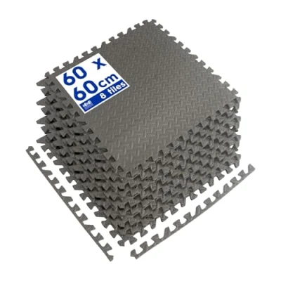 EVA Foam Gym Flooring Mats 60 x 60cm 8x Large Black Heavy Duty Non Slip Rubber Matting Floor Tiles for Exercise, Home, Garage, Pool, Treadmill, Workout Equipment by Harbour Housewares