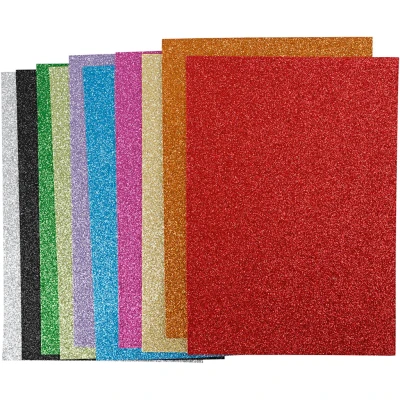 EVA Foam Sheets, A4 21x30 cm, thickness 2 mm, asstd. colours, glitter, 10asstd sheets