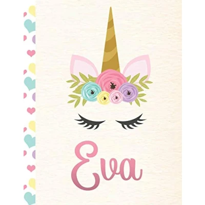 Eva: Personalized Unicorn Sketchbook For Girls With Pink Name 8.5x11 110 Pages. Doodle, Sketch, Create!