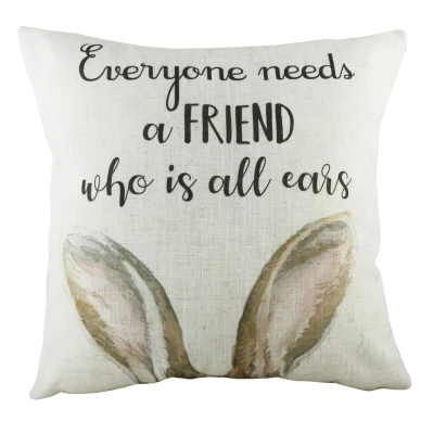 Featuring a hand-painted watercolour design of some bunny ears and printed slogan Complete with a plain reverse, standard knife edging and hidden zip closure Made of a Polyester-Linen Mix, this cushion is super soft yet durable Machine Washable at 30 Degrees and Line Dry Only Designed, printed and made in the UK, Insert included