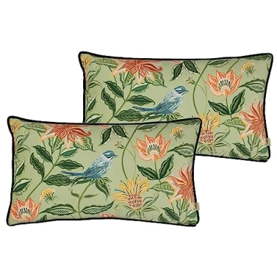 Evans Lichfield Chatsworth Aviary Piped Feather Filled Cushion Twin Pack