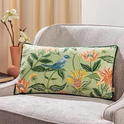 Evans Lichfield Chatsworth Aviary Velvet Piped Feather Rich Filled Cushion