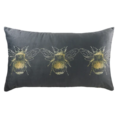 Evans Lichfield Gold Bee Cushion Cover, Velvet, Grey, 30 x 50cm