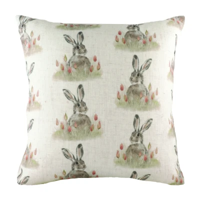 Secret SalesThe Hedgerow Hare repeat cushion features a delicatly painted design of Woodland Hare's, and is complete with a plain reverse, standard knife edging and hidden zip closure. Made of a Polyester-Linen Mix, this cushion is super soft yet durable and suitable for machine wash.