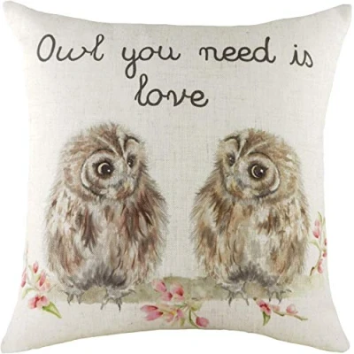 Featuring a watercolour painting of two in love woodland owls Complete with standard knife edging and hidden zip closure Made of a polyester-linen mix, this cushion is super soft yet durable Machine washable at 30 degrees and line dry only Designed, printed and made in the UK, insert not included