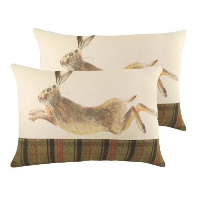 Evans Lichfield Hunter Leaping Hare Cushions (Twin Pack) Multicolour Size 40cm (w) x 60cm (l)