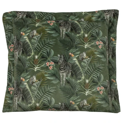 Featuring a repeated design of a poised Zebra and Monkey surrounded by jungle foliage with rich tonal colours. Complete with an oxford border edging, plain reverse and hidden zip closure. Made of 100% Polyester this cushion is super soft yet durable. Machine Washable and Line Dry Only. Designed, printed and made in the UK.